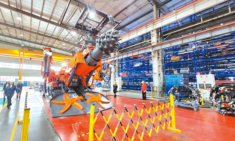 • 山西美佳礦業(yè)裝備有限公司生產(chǎn)車間內(nèi)工人們正在安裝調(diào)試掘進(jìn)設(shè)備